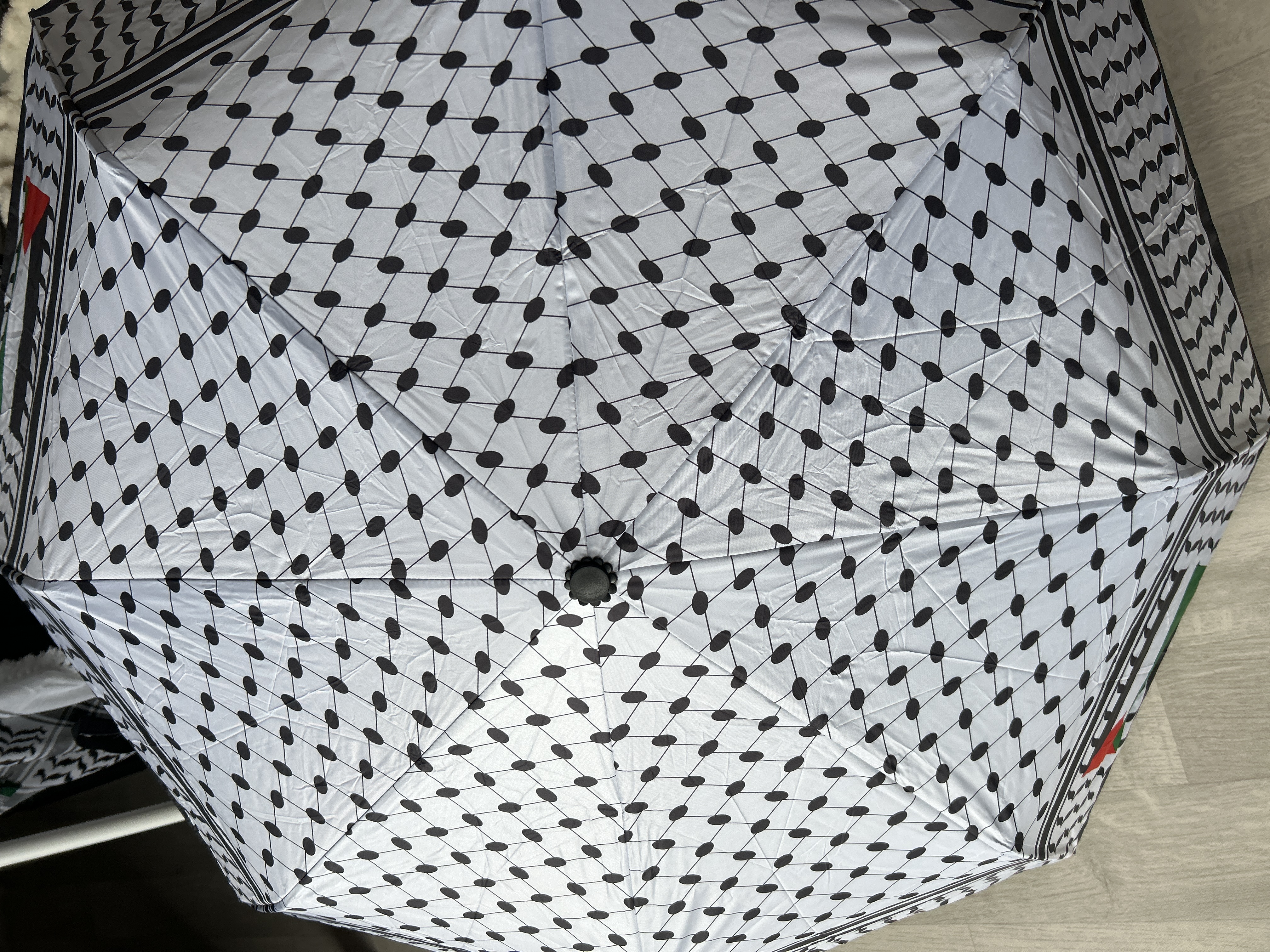 Vous pouvez acheter Parapluie keffieh palestinien : un accessoire engagé contre la pluie et l’oubli chez Solivr.